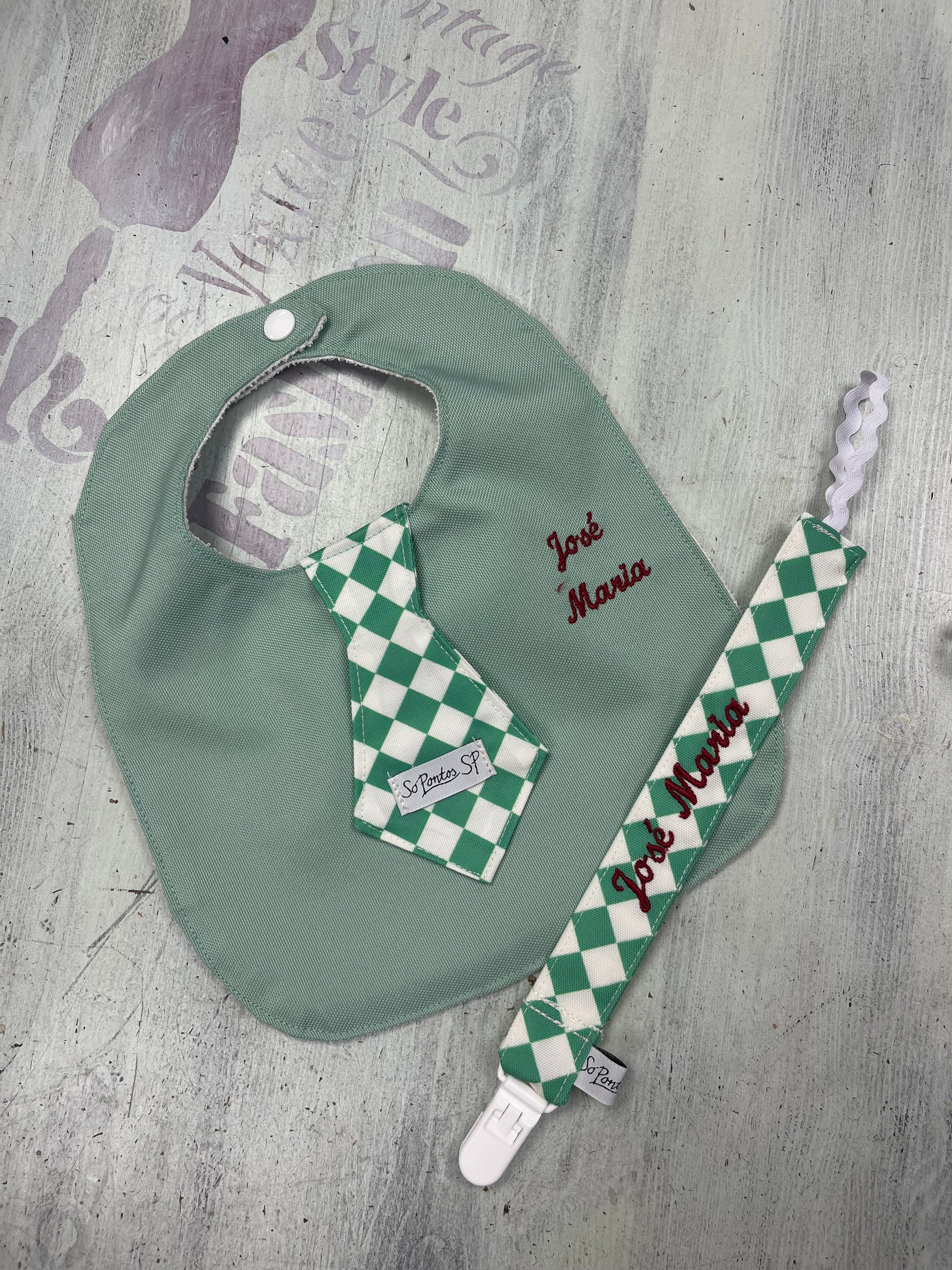 Babete com gravata, forrado com turco plastificado para uma maior durabilidade.